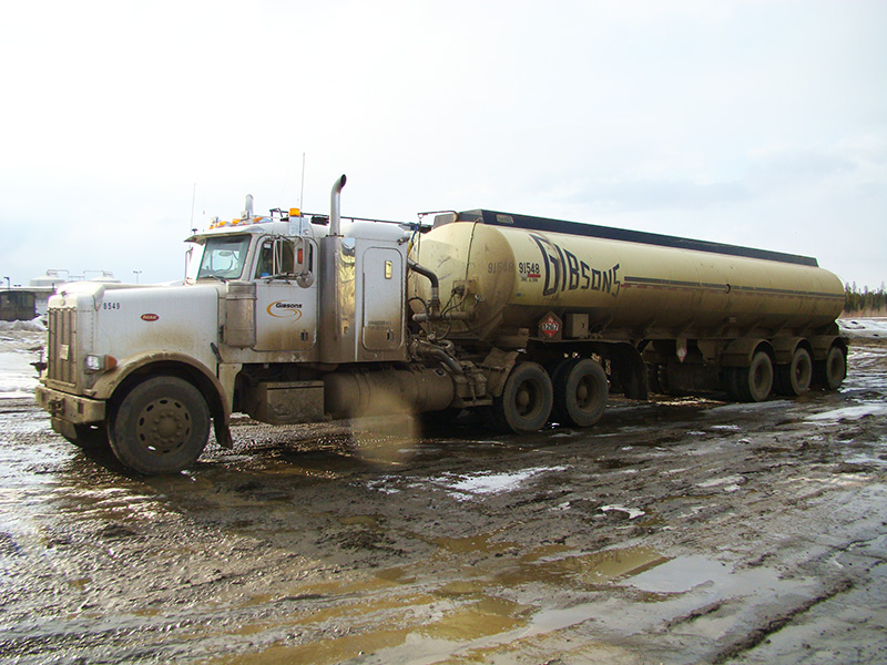 Well I’ve been working now for just about three weeks straight and will get a week off this Thursday. I will then have to put my truck in the shop to get it serviced and a good check up to see how much damage the rough gravel/mud roads up here have caused. The work itself is not that hard except for dragging the hose around through the mud and chaining up once in a while. From what I gather I haven’t seen the worst of the mud yet so I’ll see how I feel in a couple of weeks or so. Driving on the roads can be quite challenging especially when meeting another tanker coming the opposite way. We both have to slow right down and move over into the soft stuff where if you are not careful you can slide off the road and have to get pulled out. The rule of the day is to take your time and not get over too far to one side even when another driver won’t give you room. Working nights has been challenging also as I haven’t had to do it in over 20 years or more and my body took a while to adjust. I’m still not sleeping well on some days but I get through it. I’ve added a couple of pictures below of my truck before and after the mud. Also a video (click on the link) of me unloading at the battery during the morning hours. Video is 4 mb so may take a while to upload depending on your server. Bye for now. Wabasca Crude Oil Hauling
